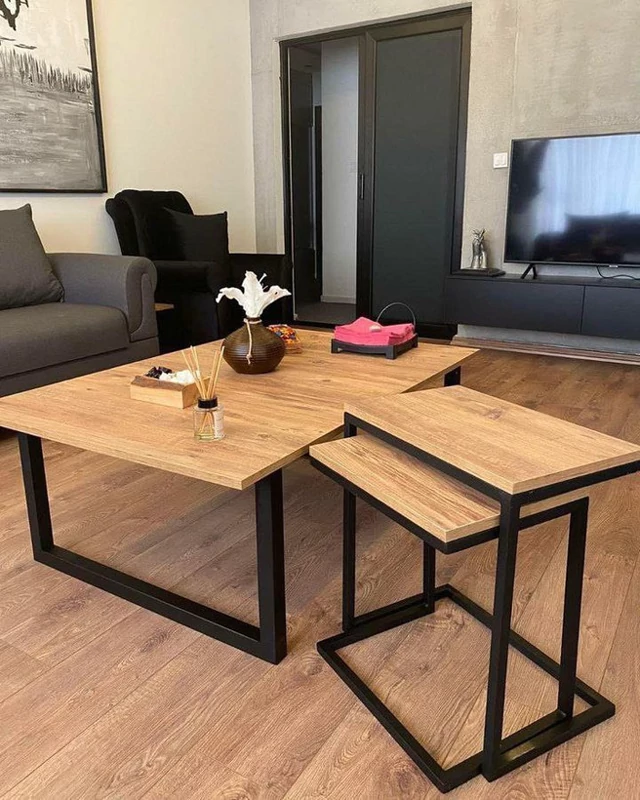 استند مدرن تلفیقی چوب و فلز مناسب فضاهای مدرن G125(ست دوتایی)