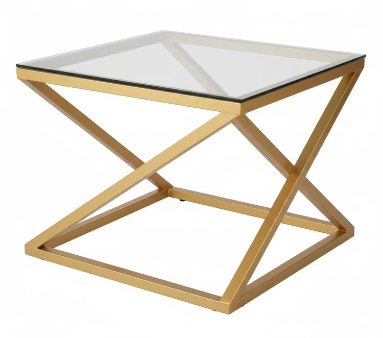 این میز کنار مبلی خاص با طراحی مدرن و هنری، ترکیبی چشمنواز از جلوهی طلایی لوکس و هندسهی خلاقانه است که در نگاه اول چشمها را خیره میکند.