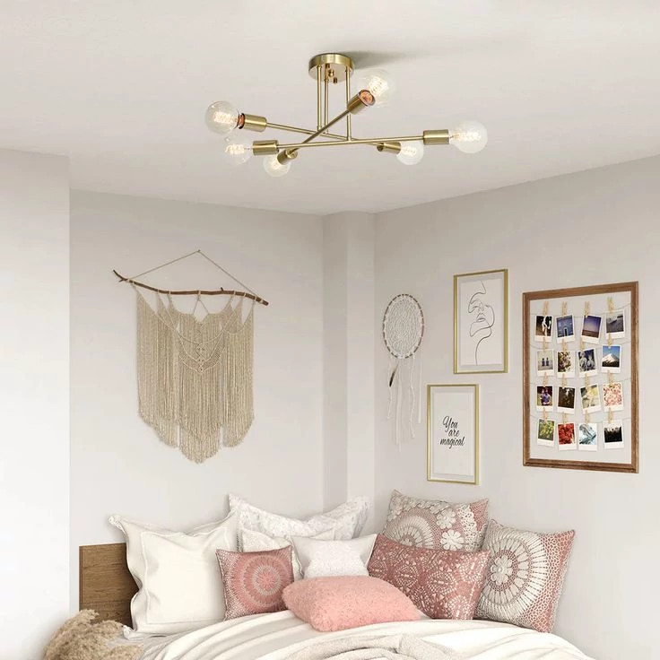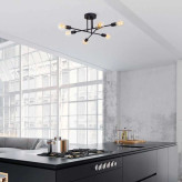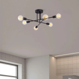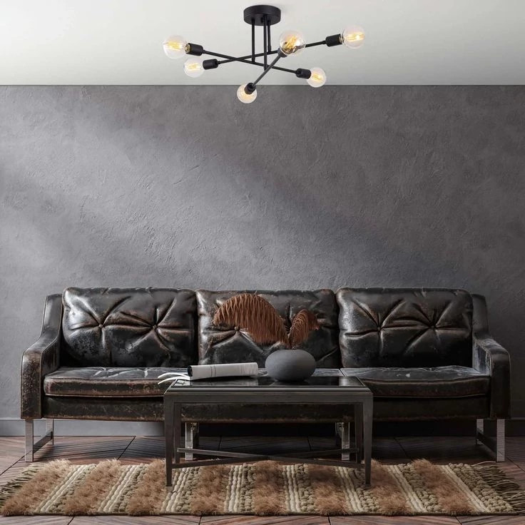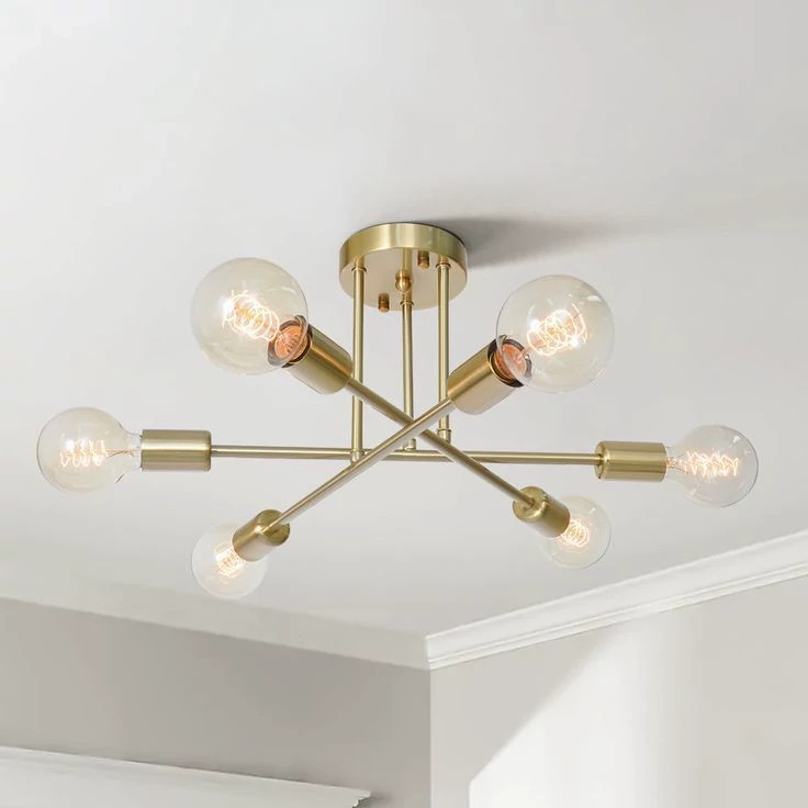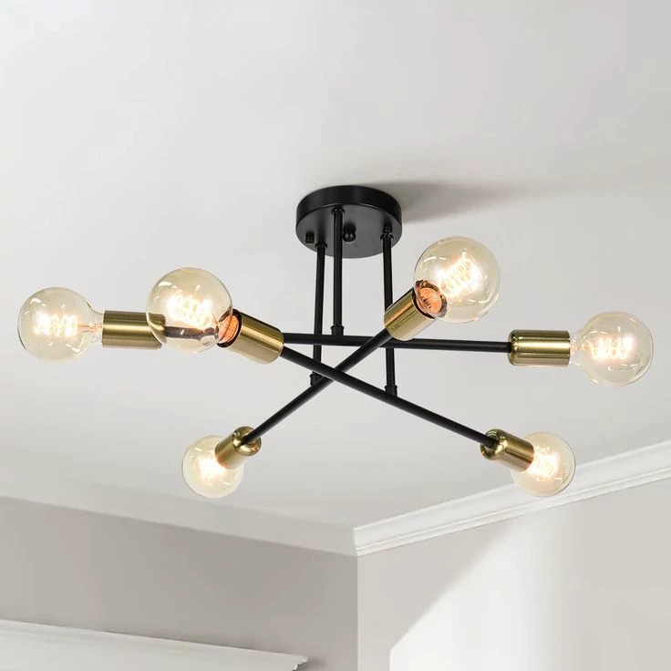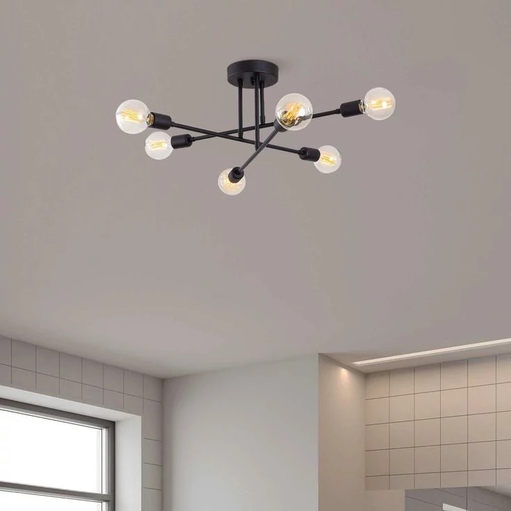 این مدل لوستر از نوع سقفی یا نیمهآویز است و برای فضاهایی که آویز بلند در آنجا امکانپذیر نیست، کاربرد دارد. شاخههای فلزی به صورت متقارن و زاویهدار طراحی شدهاند تا نور را به صورت یکنواخت در سطح اتاق پخش کنند.