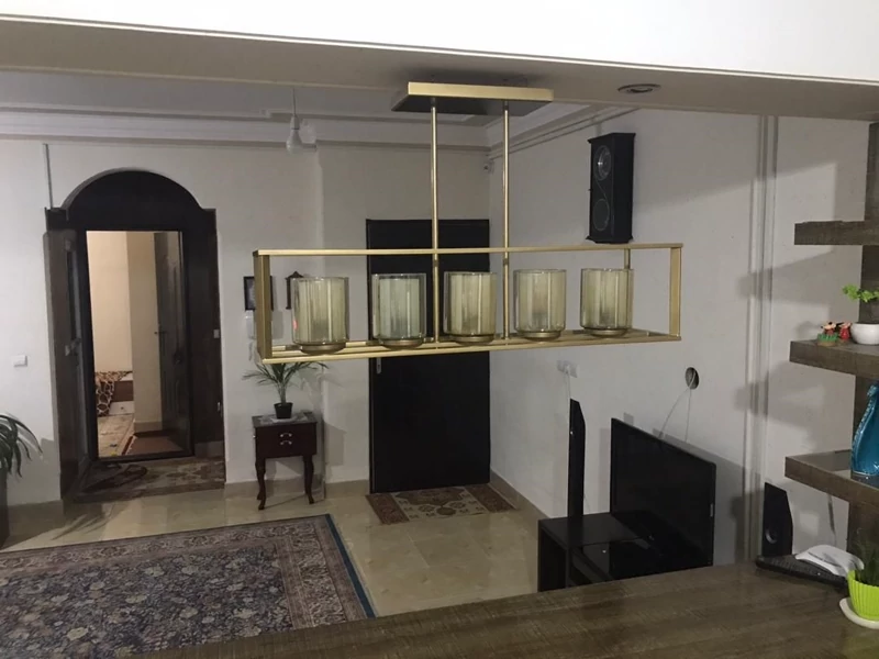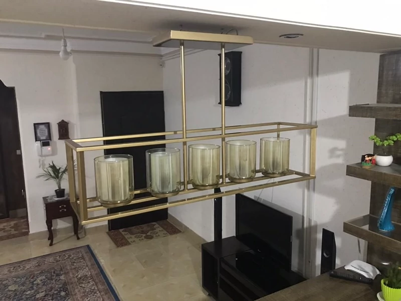 نورپردازی: 5 شعله با سرپیچهای طلایی E27 که امکان استفاده از لامپهای ادیسونی و دکوراتیو را فراهم میکند.