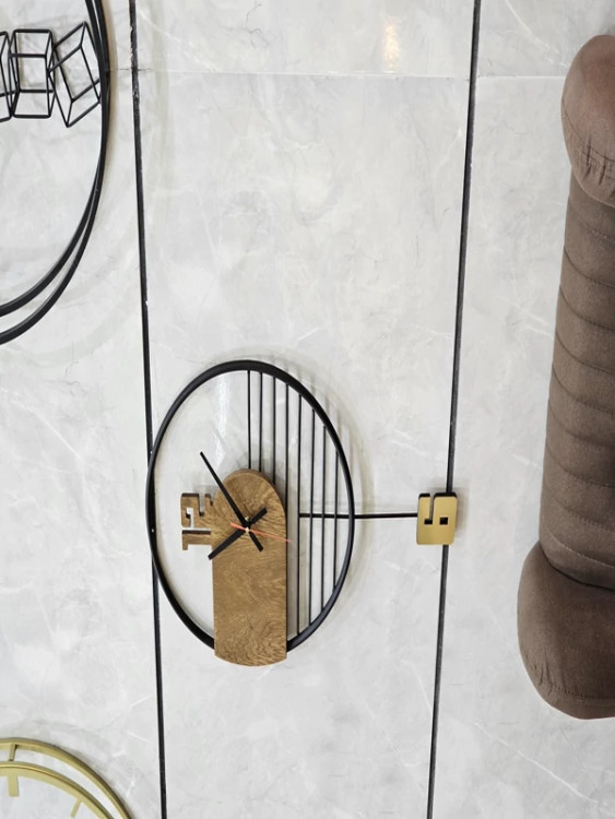 ین ساعت دیواری فلزی با طراحی منحصر به فرد و مینیمالیستی خود، فراتر از یک وسیله برای نمایش زمان است؛ اثری هنری است که به دیوار شما جلوهای خاص میبخشد. ساختار دایرهای دوبل به همراه خطوط متقاطع ظریف، عمق و شخصیت بصری دلنشینی ایجاد میکند.
