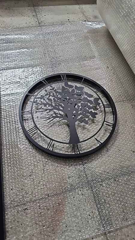 پوشش رنگ کوره استاتیک: بدنه فلزی این ساعت با رنگ پودری الکترواستاتیک پوشش داده شده است که تضمینکننده مقاومت در برابر خط و خش و ثبات رنگ همیشتنوع در اجرا: این ساعت زیبا در ۵ رنگ جذاب و متناسب با سلیقه شما قابل سفارش است: ⚪️ سفید | 🔘 طوسی | 🟡 طلایی | ⚪️ نقرهای | ⚫️ طراحی باشکوه: ابعاد بزرگ و طرح مشبک درخت، این ساعت را به یک تابلوی دکوراتیو مرکزی برای پذیرایی یا اتاق خواب تبدیل کرده استمشکیند