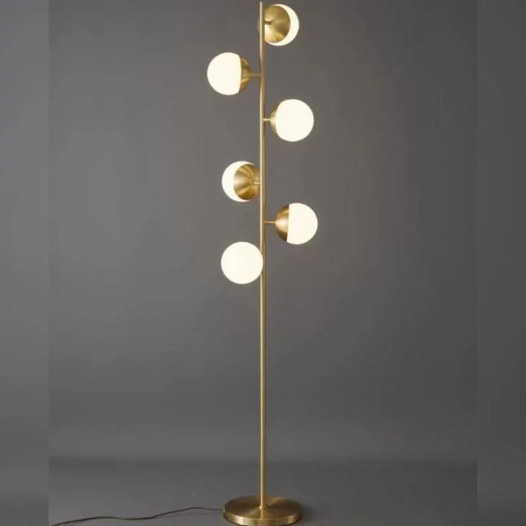 آباژور ایستاده مدرن شش شعله با پایه مشکی و طلایی مات