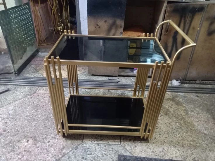 کیفیت ممتاز: فریم فلزی رنگ طلایی کورهای داشته و سطح رویی آن با شیشه یا سنگ مشکی پوشانده شده است (بسته به متریال دقیق).