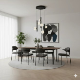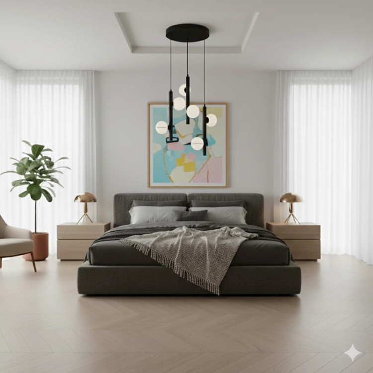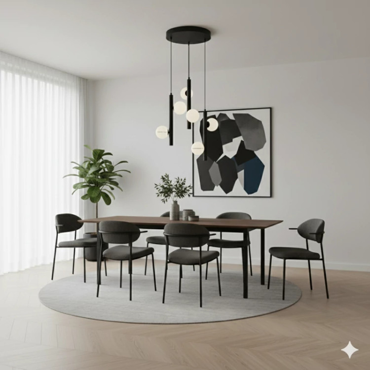 بهترین مکانها برای نصب: ۱. فضای وید (Void) و راه پله: اگر خانه دوبلکس دارید یا راه پلهای با سقف بلند، این لوستر بهترین گزینه برای پر کردن آن فضای خالی است. ۲. کنج اتاق نشیمن: میتوانید آن را در گوشهای از پذیرایی (روی میز عسلی یا کنار مبلمان) نصب کنید تا ارتفاع سقف بلندتر به نظر برسد. ۳. میز ناهارخوری گرد: اگر میز ناهارخوری گرد دارید، فرم ریزشی این لوستر تعادل زیبایی با میز ایجاد میکند.