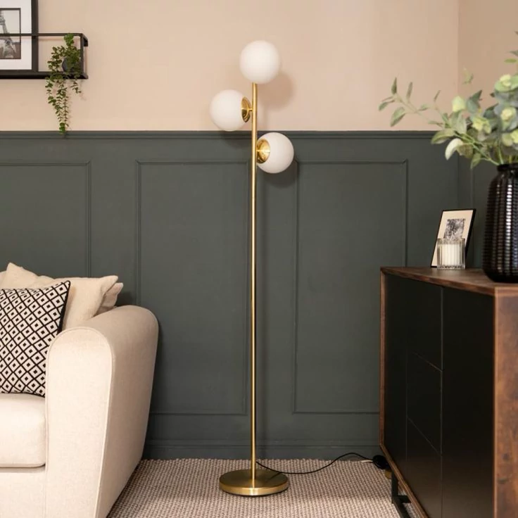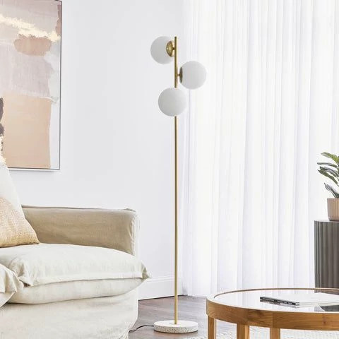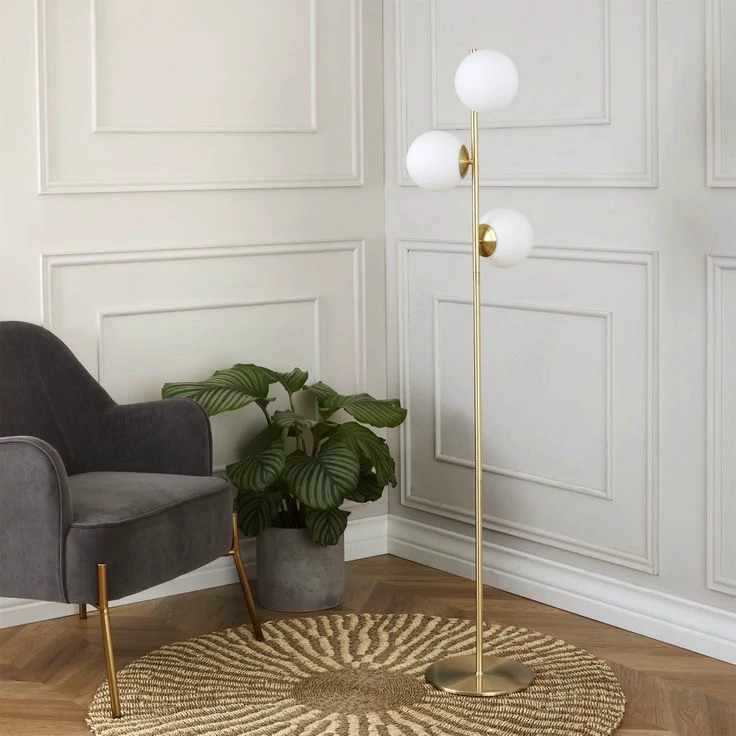آباژور ایستاده مدرن سه شعله با پایه مشکی و طلایی مات