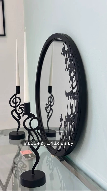 ایینه مدرن فلزی دکوراتیو خاص و جدید به همراه شمعدان