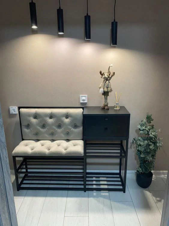 جاکفشی نشیمن دار دوطبقه یکی از محصولات جدید تولیدی متال دکوراتیو است. ابعاد این محصول در 3 سایز مختلف قابل تولید است، طول 60 یا 80 یا 100 سانتیمتر با عمق 35 و ارتفاع نشیمن 45 سانتیمتر.