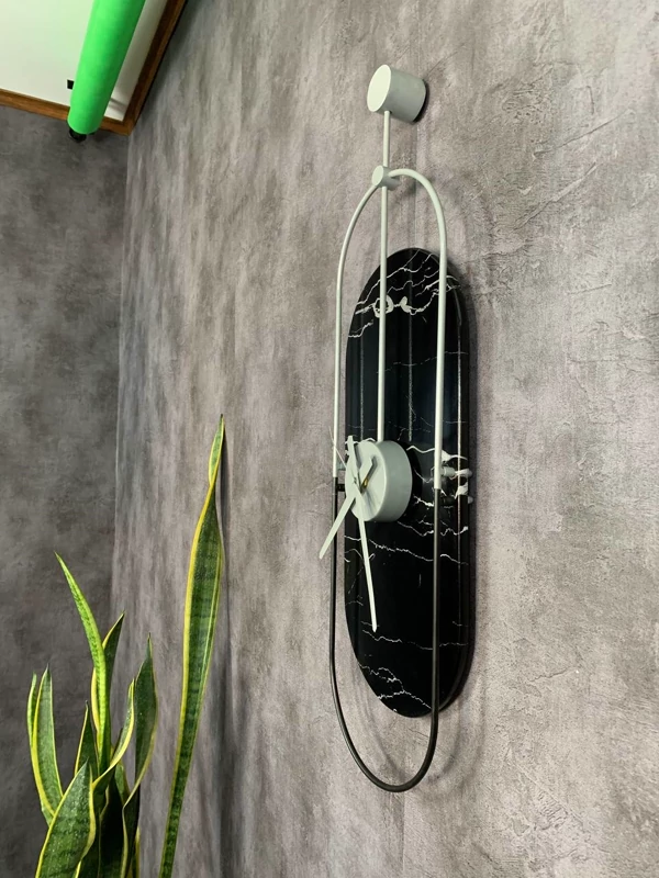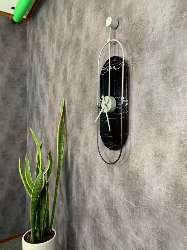 اگر به دنبال المانی هستید که فراتر از نمایش زمان، به عنوان یک اثر هنری روی دیوار شما بدرخشد، این ساعت دیواری مدرن مخصوص شماست. طراحی منحصربهفرد این محصول با فرم بیضی عمودی و ترکیب تضاد رنگی مشکی و سفید، فضایی دگرگون شده در دکوراسیون داخلی ایجاد میکندطراحی دکوراتیو: فرم کپسولی و کشیده این ساعت، آن را برای دیوارهای باریک یا ستونهای پذیرایی بسیار مناسب کرده است.