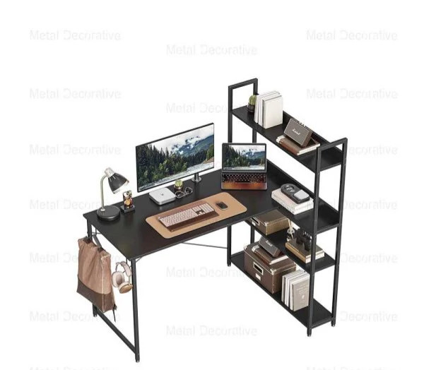 میز تحریر پایه فلزی با کتابخانه 4 طبقه