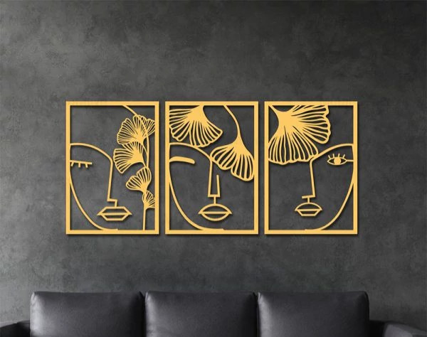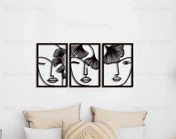 تابلوفلزی سه تکه چهره زن و گل T180