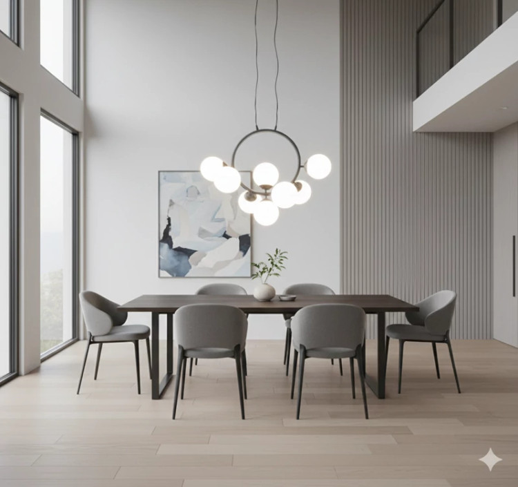 توزیع نور در این مدل کاملاً یکنواخت است، بدون اینکه چشم را آزار دهد. این لوستر برای ایجاد یک «بیانیه طراحی» (Statement Piece) در فضاهای اصلی خانه طراحی شده و با رنگ خنثی و بافت مینیمال، به راحتی با سبکهای صنعتی، مدرن و اسکاندیناوی ترکیب میشود.