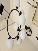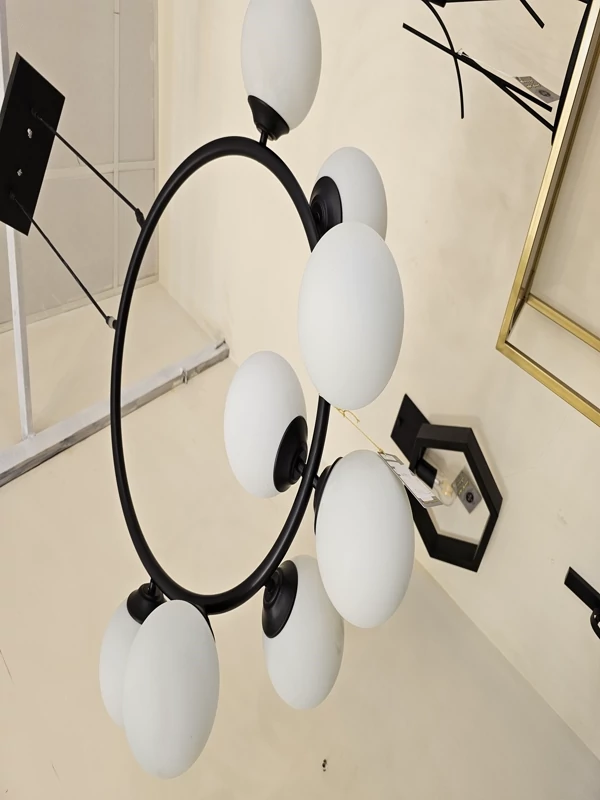 با این لوستر خیرهکننده، قلب خانه خود را روشن کنید. لوستر حلقهای، تجسمی از هماهنگی هندسه و نور است؛ یک دایره قدرتمند از جنس فلز مات که گویهای نورانی را در مداری منظم نگه داشته است.