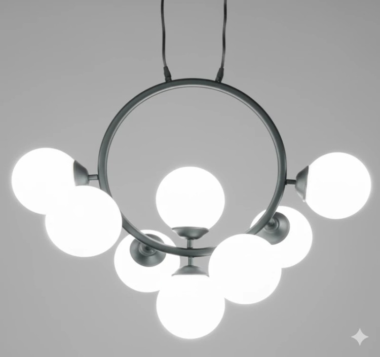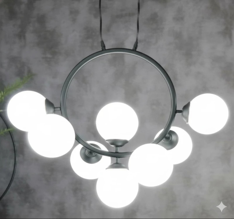 با این لوستر خیرهکننده، قلب خانه خود را روشن کنید. لوستر حلقهای، تجسمی از هماهنگی هندسه و نور است؛ یک دایره قدرتمند از جنس فلز مات که گویهای نورانی را در مداری منظم نگه داشته است.