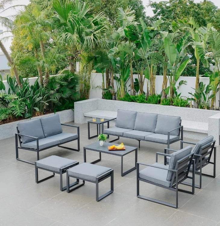 قابل استفاده به عنوان مبل باغی زیرا متریال این ست مبلمان در مقابل شرایط جوی و آب و هوایی مقاوم است (جنس پارچه ها ضدآب و قابل تغییر)