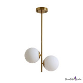 ین محصول یک آویز دکوراتیو دو شعله است که بر پایه یک میله عمودی مرکزی طراحی شده است. دو حباب کروی شیشهای در ارتفاعهای مختلف و در خلاف جهت یکدیگر روی میله نصب شدهاند که باعث ایجاد توازن بصری و زیبایی خاصی میشود.