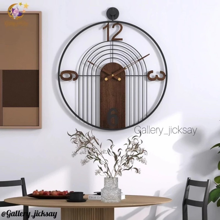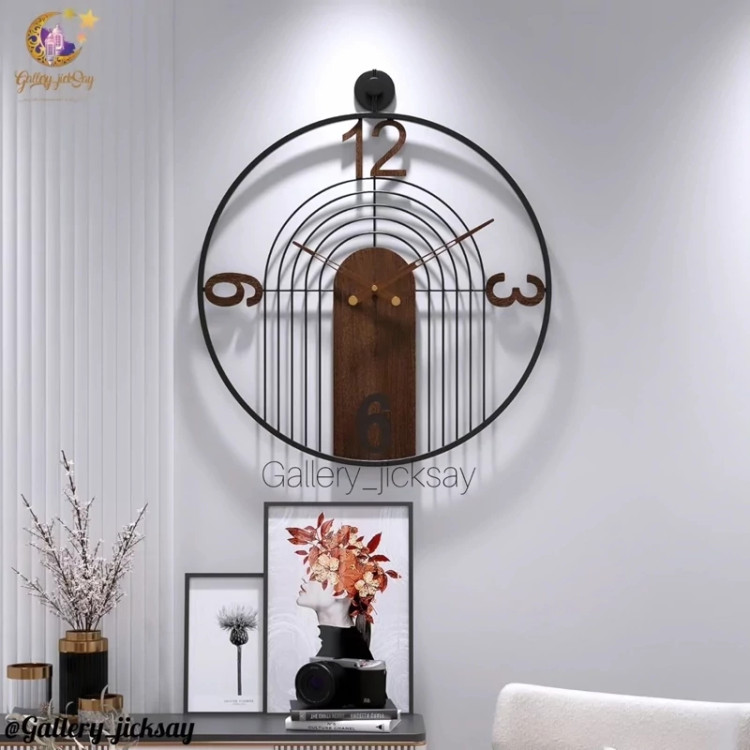 اگر به دنبال یک نقطه کانونی خیرهکننده برای دیوار پذیرایی خود هستید، این ساعت فراتر از یک وسیله، یک تابلوی هنری است. ترکیب گرمای چوب با ظرافت خطوط فلزی، تعادلی بینظیر به فضای خانه شما میبخشد.