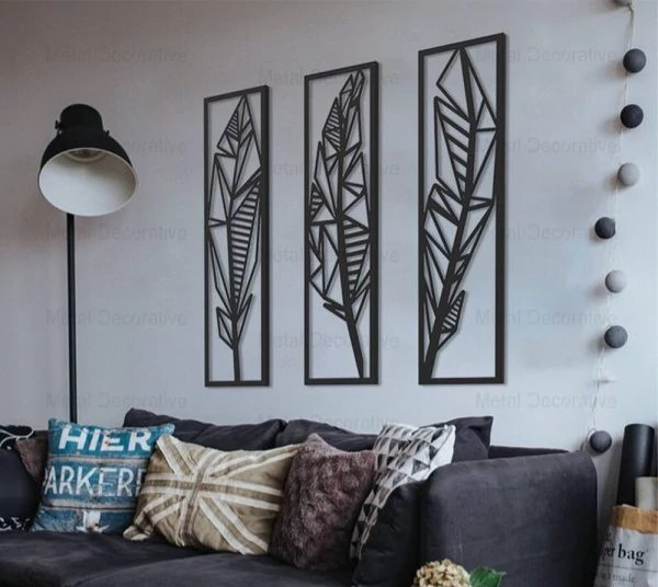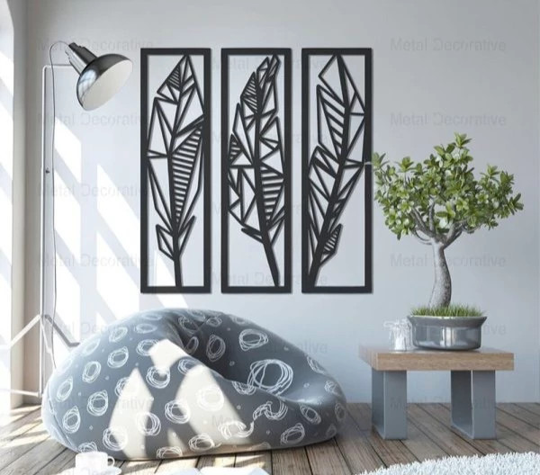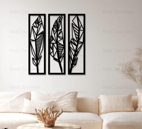 تابلو دکوراتیو فلزی طرح پر سه تکه T143