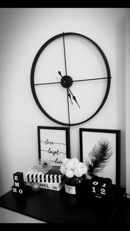 جنس با کیفیت: ساخته شده از فلز مقاوم و بادوام با پرداخت مشکی مات که جلوهای لوکس و پایدار داعقربههای دقیق: حرکت روان و بیصدای عقربهها، آرامش را به فضای شما هدیه میدهد.