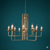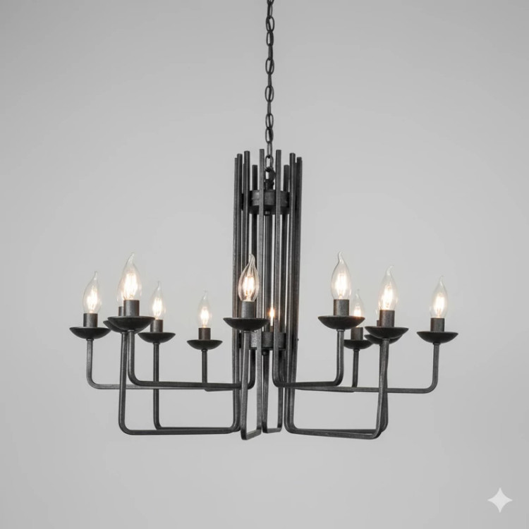 این لوستر دارای یک بدنه استوانهای مرکزی است که از میلههای فلزی موازی تشکیل شده است (این بخش شبیه به یک ستون تنه درخت یا یک قفس طراحی شده). از این بخش مرکزی، ۸ شاخه افقی و زاویهدار خارج شده که هر شاخه محل قرارگیری یک لامپ شمعی است