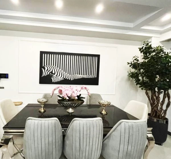 تابلو فلزی دیواری دکوراتیو فیگور بارکد جهت استفاده در دکوراسیون مدرن مسکونی می باشد . این تابلو ها از ورق فلزی و توسط دستگاه برش لیزر تولید شده و سپس در کوره های رنگ با انواع رنگ های مشکی ، سفید و طلایی قابل تولید هستند . نصب این تابلو بسیار آسان می باشد و به راحتی با استفاده از دو عدد پیچ و رولپلاک سایز متوسط می توانید روی دیوار نصب کنید