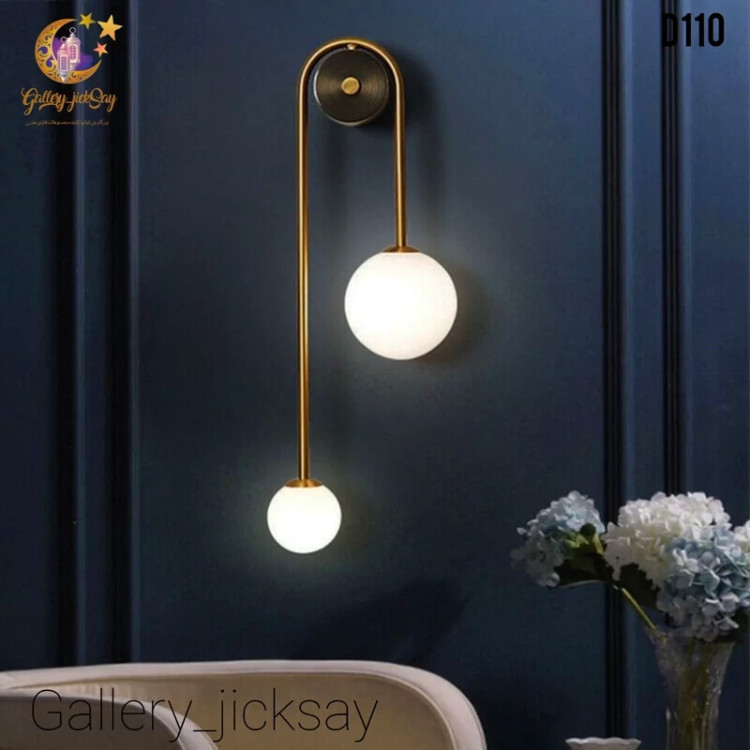 آویز دیواری مدل D110، ترکیبی بینقص از ظرافت هنر مدرن و زیبایی کلاسیک است. این محصول با طراحی آویزان و نامتقارن، که دو گوی شیشهای مات را روی یک پایه فلزی برنجی/طلایی براق معلق کرده است، بلافاصله جلوهای لوکس، آرام و صمیمی به فضای شما میبخشد. این چراغ دیواری برای ایجاد نورپردازی لایهای و تأکیدی در دکوراسیونهای شیک و امروزی یک انتخاب بیبدیل است.