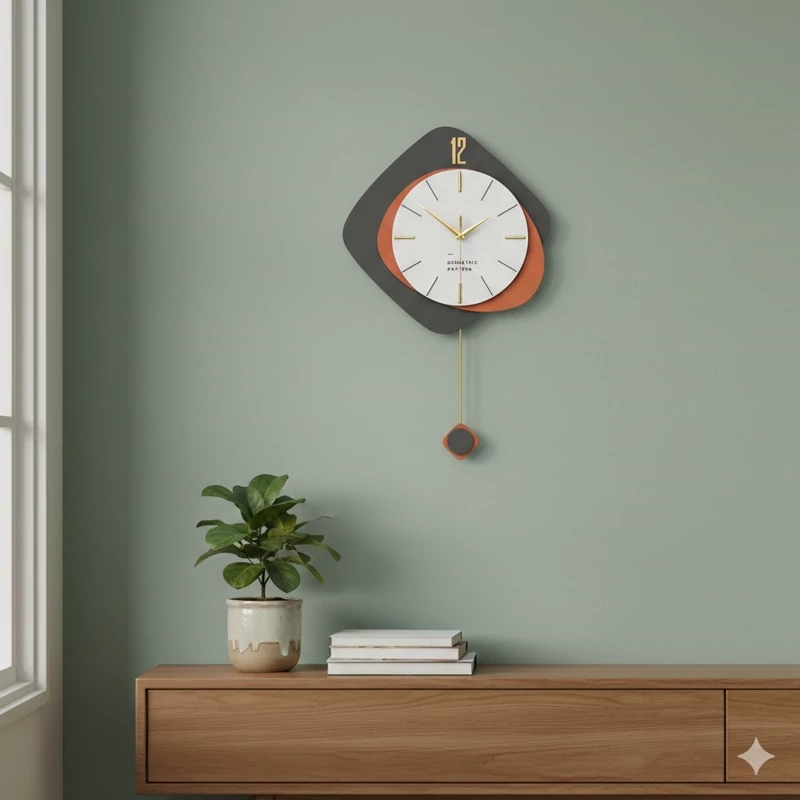 ساعت دیواری مدرن فلزی و تلفیق چوب لاکچری زیباوجدیدH533