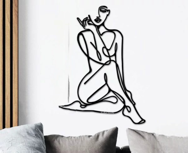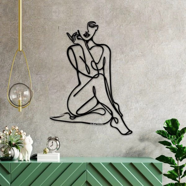 تابلو دکوراتیو دیواری فیگور زن نشسته نیمه سینگل لاینT238