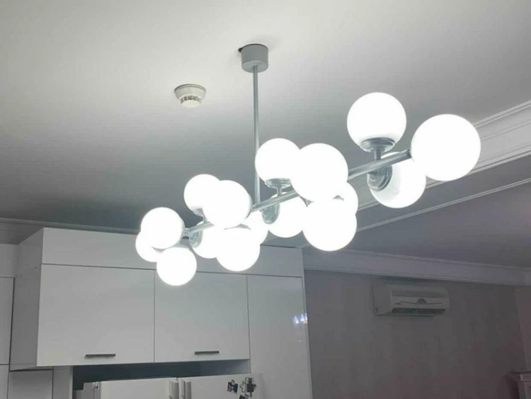 با این لوستر خیرهکننده، قلب خانه خود را روشن کنید. لوستر حلقهای، تجسمی از هماهنگی هندسه و نور است؛ یک دایره قدرتمند از جنس فلز مات که گویهای نورانی را در مداری منظم نگه داشته است.