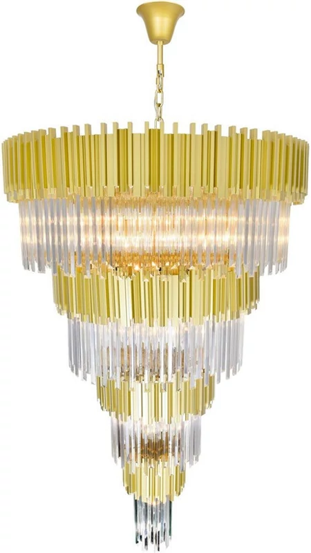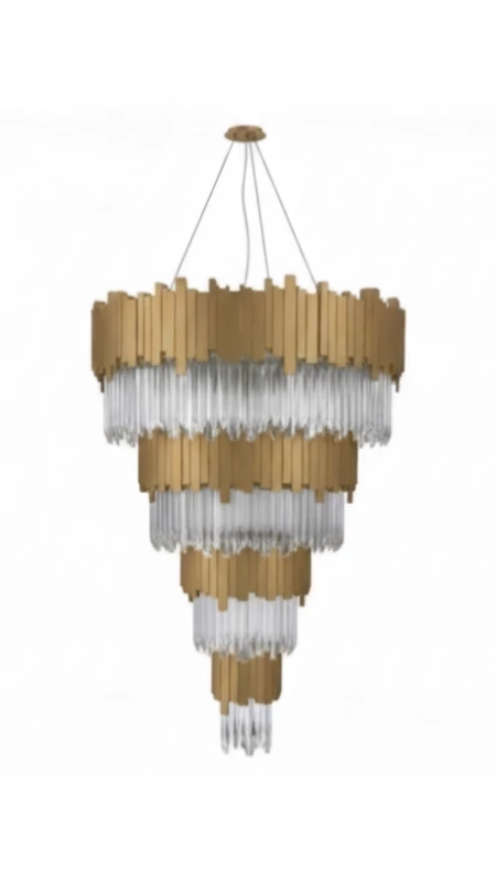 این لوستر مدرن و لوکس با طراحی آبشاری و طبقاتی خود، ترکیبی بینظیر از ظرافت و شکوه را به فضای شما میبخشد. بدنهی اصلی لوستر از فلز با روکش طلایی براق ساخته شده که در کنار آویزهای کریستالی شفاف و بلند، جلوهای خیرهکننده ایجاد میکند. طراحی منحصر به فرد این لوستر به گونهای است که نور را به زیبایی در فضا پخش کرده و درخشش خاصی به محیط میدهد. این محصول برای فضاهای داخلی با سقف بلند مانند نشیمن، پذیرایی، ورودیهای بزرگ و حتی اتاقهای غذاخوری لوکس مناسب است. این لوستر نه تنها یک منبع نور، بلکه یک اثر هنری زیباست که میتواند نقطه کانونی دکوراسیون شما باشد.