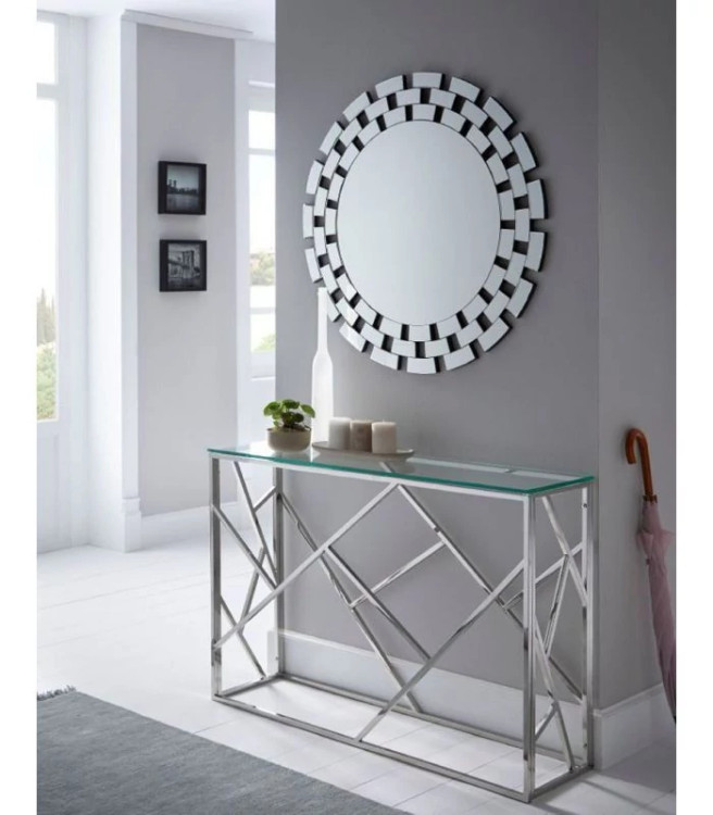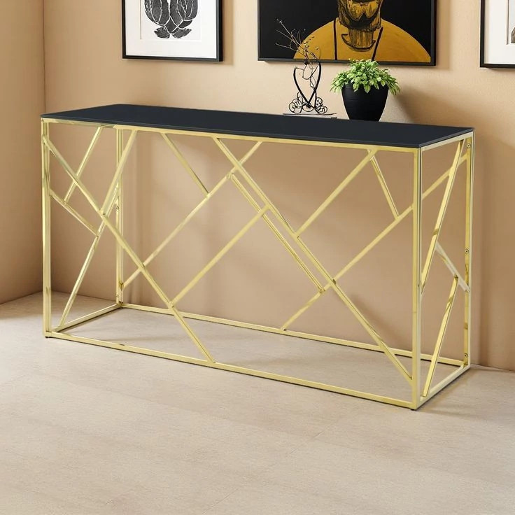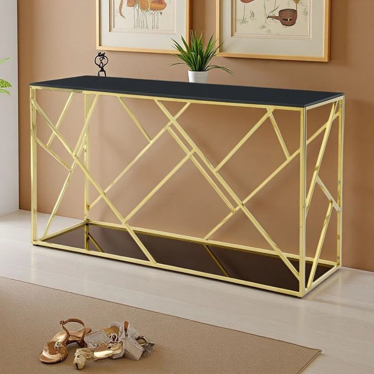این کنسول شیک و مدرن، یک انتخاب عالی برای افزودن حس لوکس و مدرنیته به فضای پذیرایی، ورودی یا حتی اتاق کار شماست. طراحی آن ترکیبی هنرمندانه از استحکام و ظرافت است که چشم هر بینندهای را به خود جلب میکندطراحی هندسی خاص: ساختار فلزی این کنسول با طرحهای لوزی (Diamond)، جلوهای بصری فوقالعاده ایجاد کرده که آن را از سایر کنسولهای رایج متمایز میکند. این طرح مشبک، عمق و جذابیت خاصی به فضا میبخشد.
