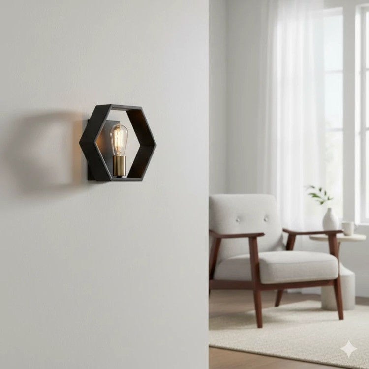 این آویز دیواری مدرن با طراحی هندسی و مینیمال، نه تنها یک منبع نور، بلکه یک عنصر دکوراتیو چشمنواز است که به دیوار شما عمق و شخصیت میبخشد. قاب هگزاگون (ششضلعی) فلزی مشکی مات در ترکیب با جزئیات طلایی براق، زیبایی منحصربهفردی را ارائه میدهد و آن را برای فضاهای مدرن، صنعتی و اسکاندیناوی ایدهآل میسازد. با این آویز دیواری، فضایی گرم، دعوتکننده و در عین حال شیک ایجاد کنید