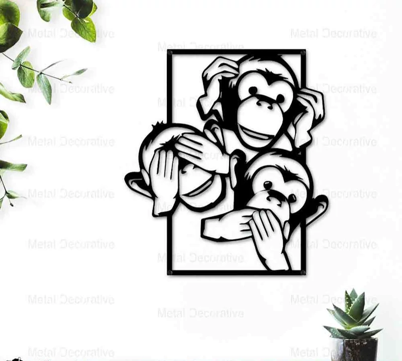تابلو فلزی 3 میمون باهوش نبین،نگو،نشنو T141